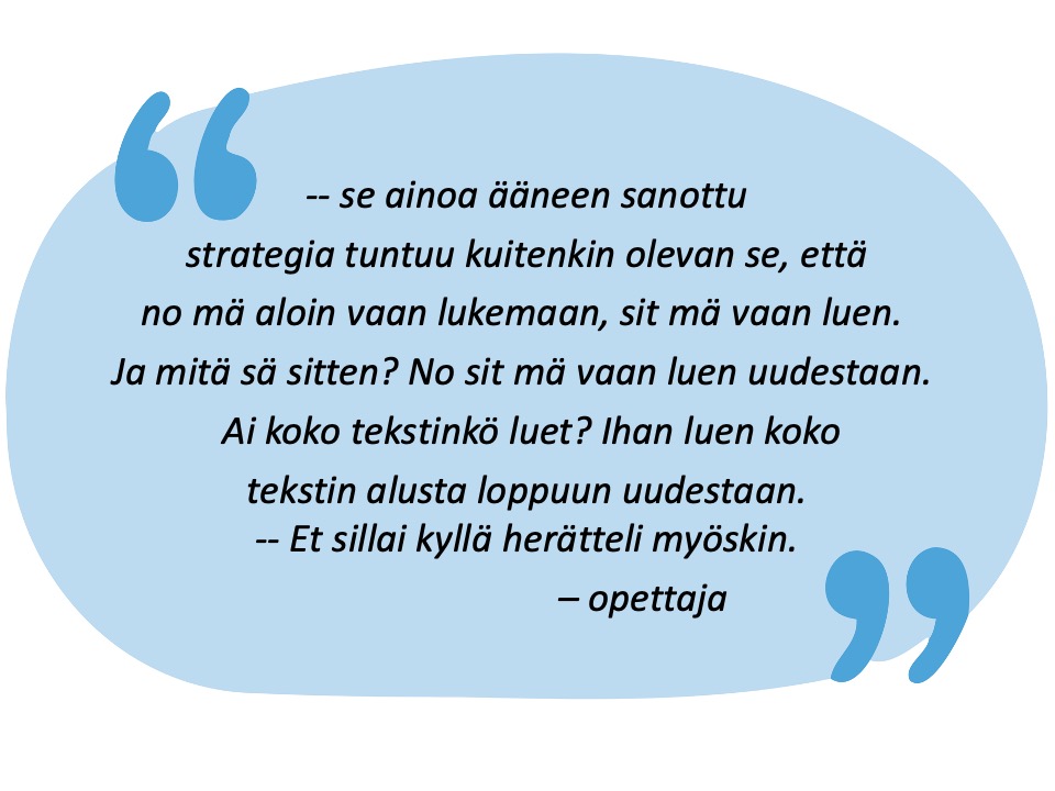 Tutkimusten mukaan strategioiden hallinta erottaa taitavat ja heikommat lukijat toisistaan merkittävästi ja selittää jopa neljänneksen PISA-tulosten vaihtelusta. Silti strategioiden käyttö vaihtelee suuresti jo alakouluiässä – eikä ikä yksin kerro, missä vaiheessa oppilaan strateginen lukeminen on. Siksi pelkkä oikeiden vastausten määrä ei aina riitä kertomaan, millaista tukea oppilas tarvitsee.