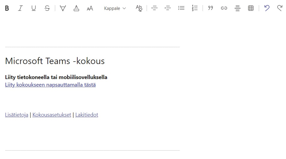 - Liitä kopioimasi linkki sähköpostiviestiin, joka lähetetään kaikille koulutukseen osallistujille tai yhteyshenkilölle